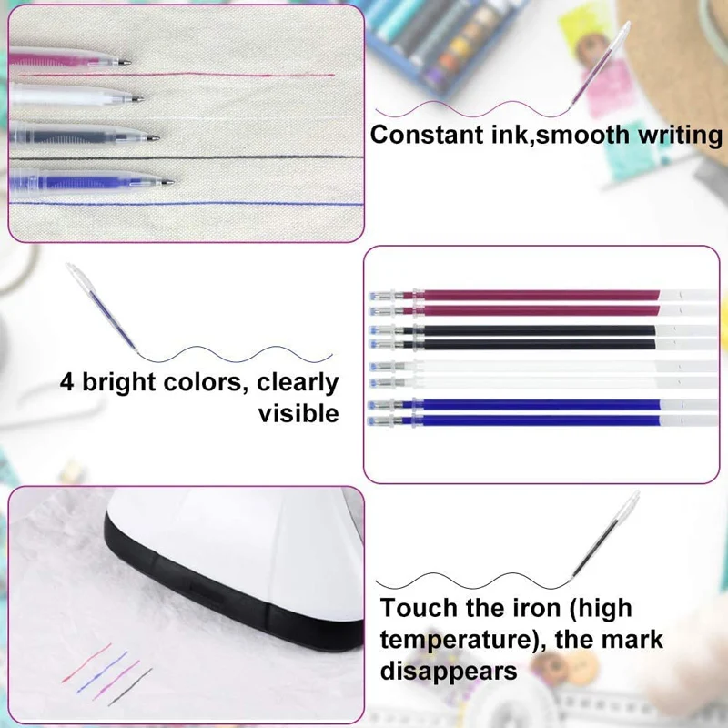 Heat erasable fabric making: a quick touch of the iron and the marks are gone, no residue to mess your clothes or fabric, unlike tailors' chalk, our sewing markers won't rub away before you've completed your project.