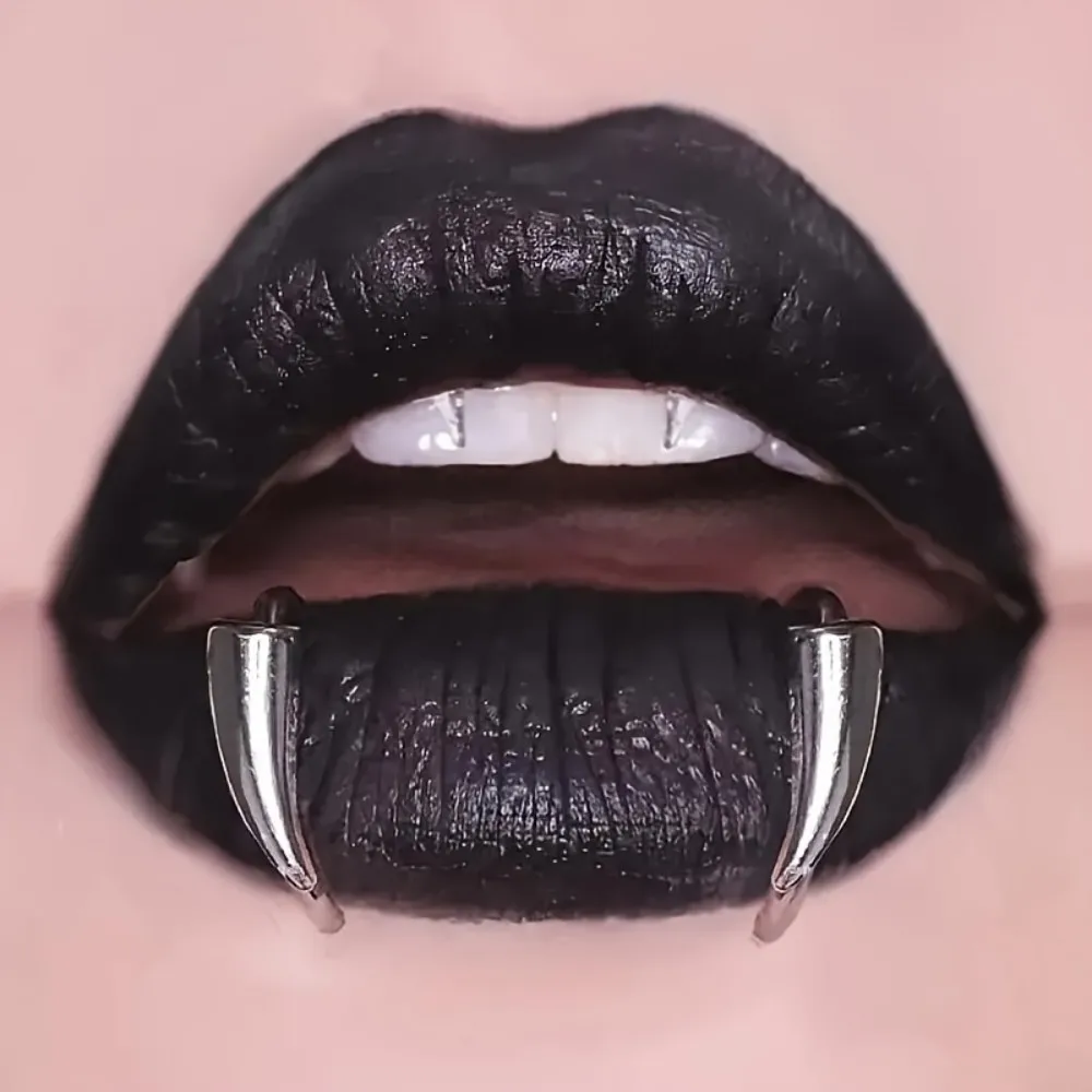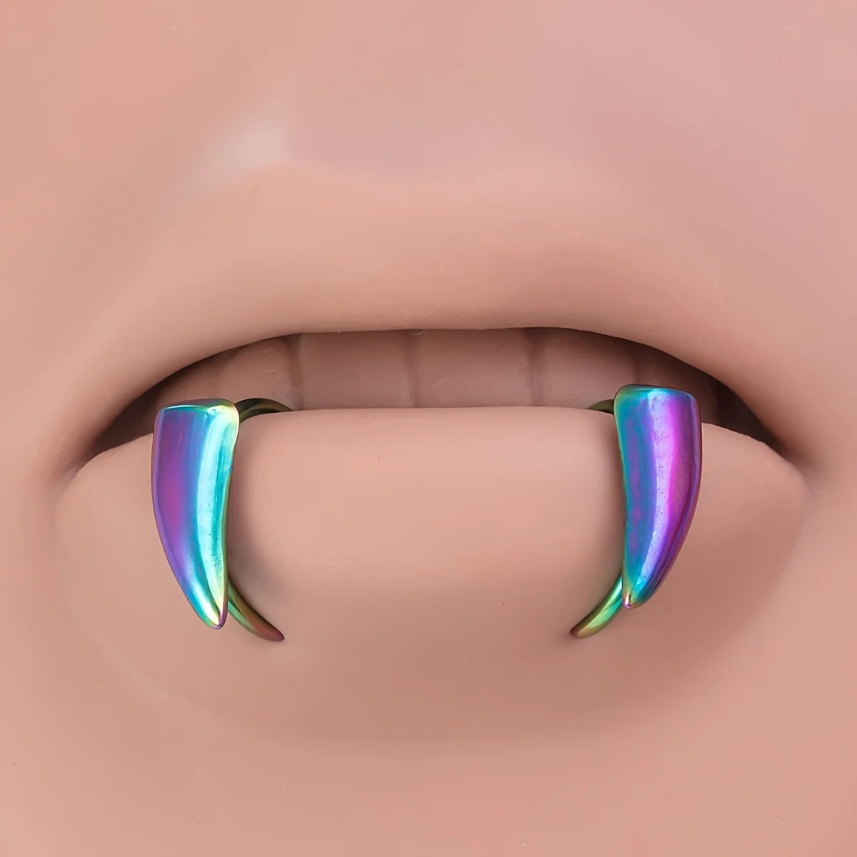 vampire fang lip rings, stainless steel lip rings, gothic lip jewelry, hip hop style piercing, fake vampire teeth jewelry, cosplay lip rings, punk fake fangs, halloween lip ring, punk fake fangs, vampire lip studs