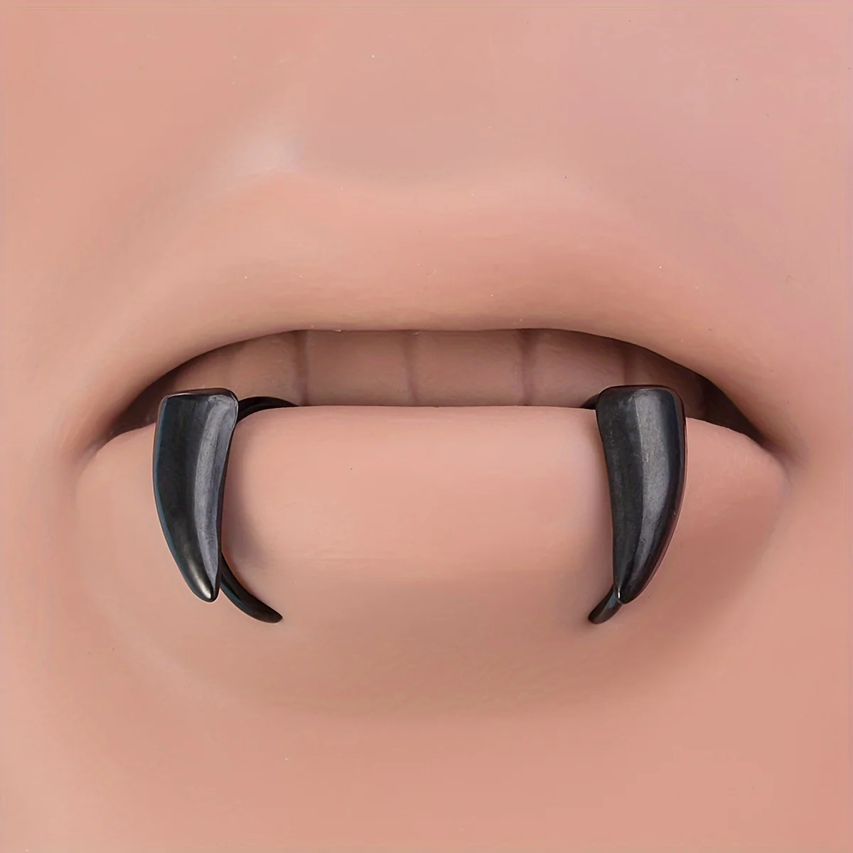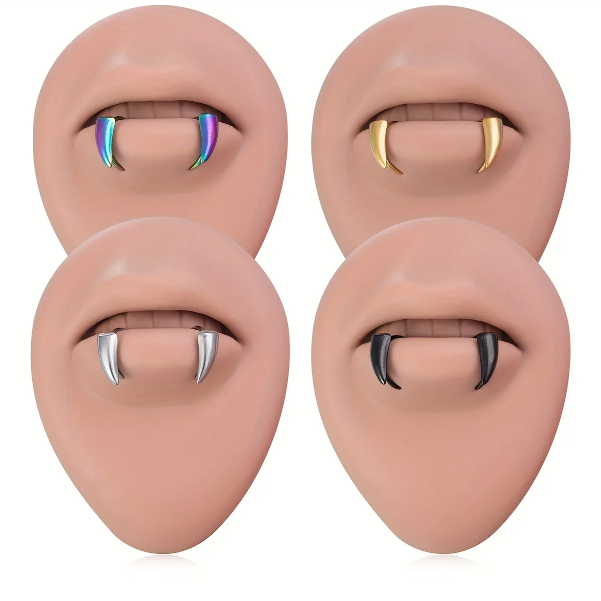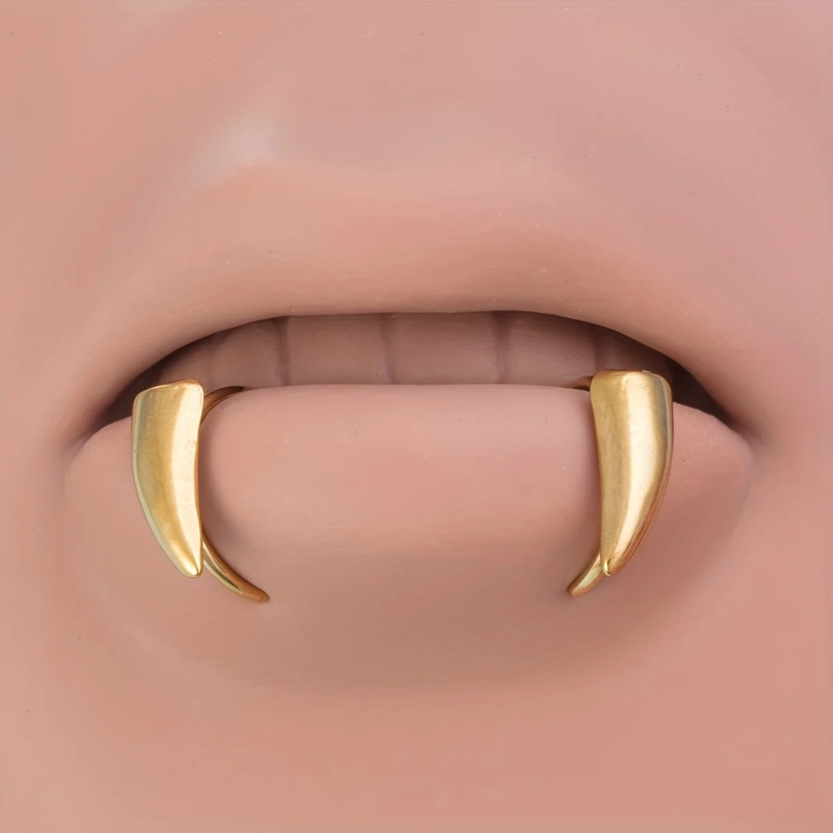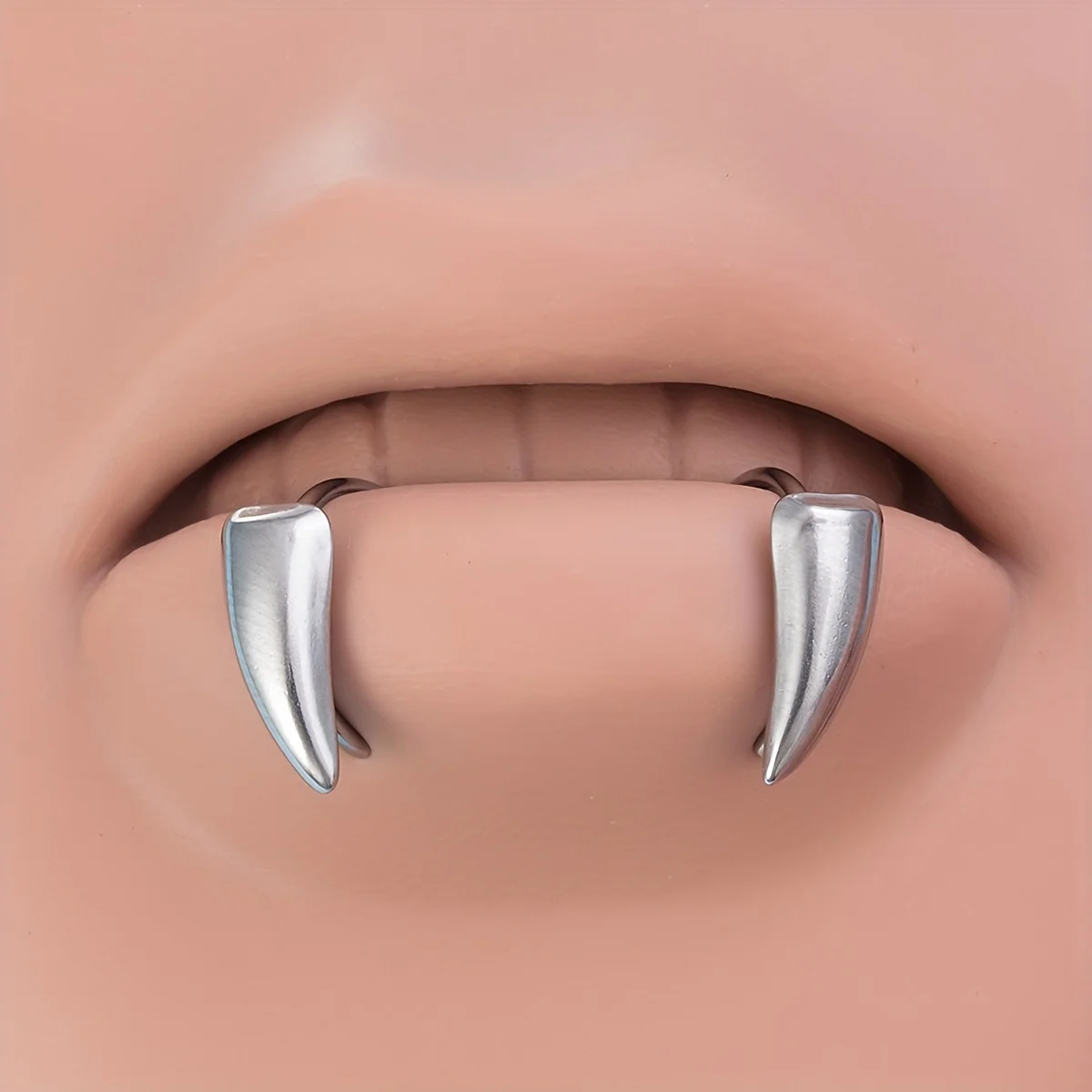 1Pair Stainless Steel Vampire Fangs Lip Rings Hip Hop Punk Gothic Style Fake Piercing Teeth Jewelry for Men and Women