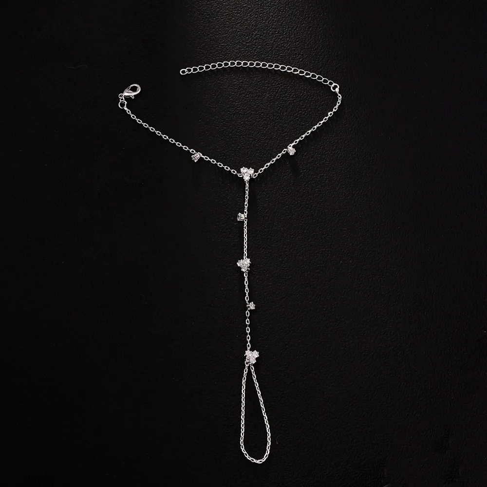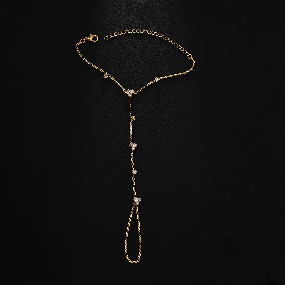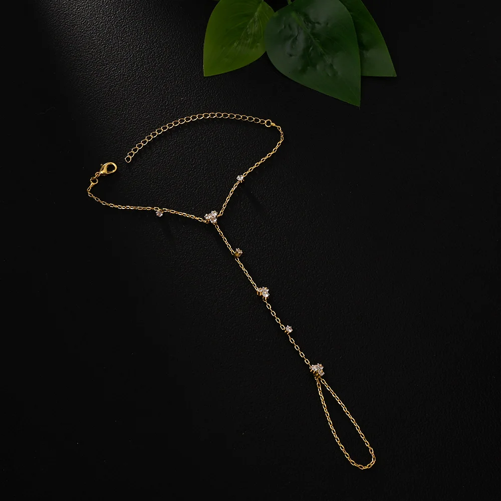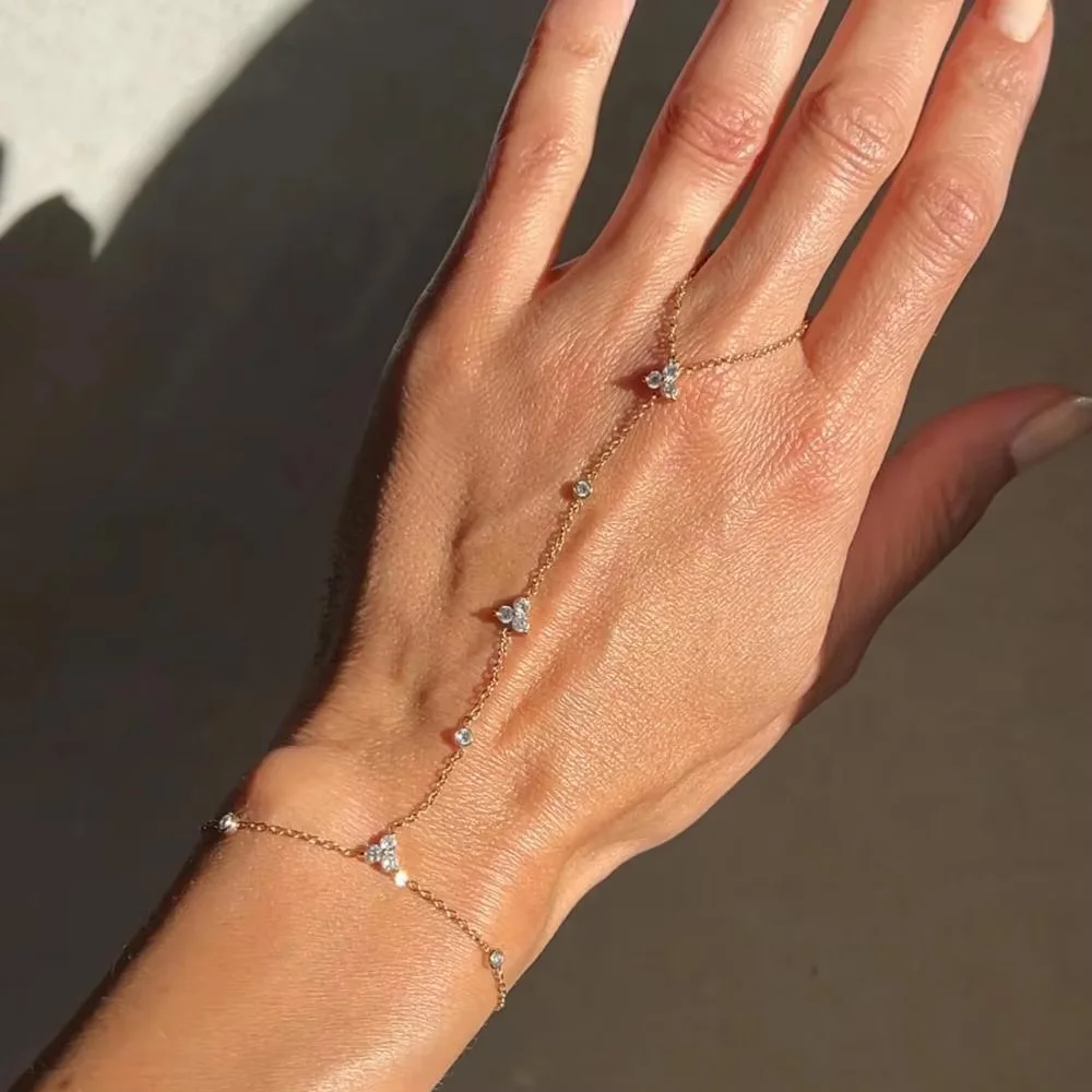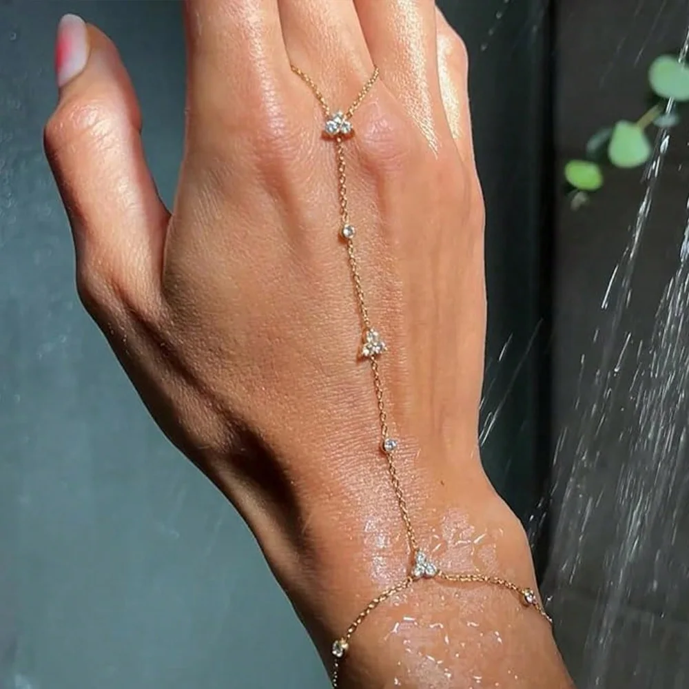 2025 Fashion Round Crystal Finger Bracelet Bangle High Quality Jewelry Intersperse Geometric Rhinestone Hand Chain Adjustable