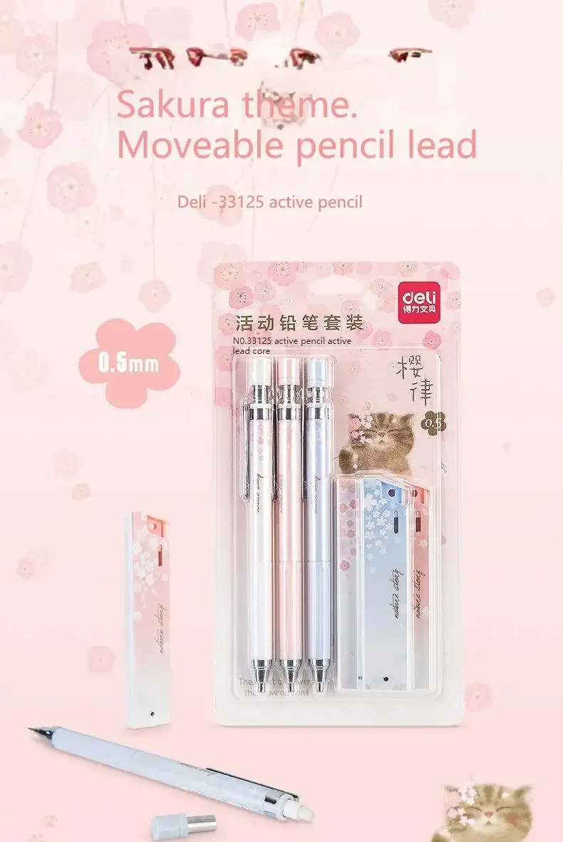 6Pcs/set Kawaii Lovely Fresh Cherry Sakura Mechanical Pencil 0.5mm Automatic Pencil for Student School Office Supplies