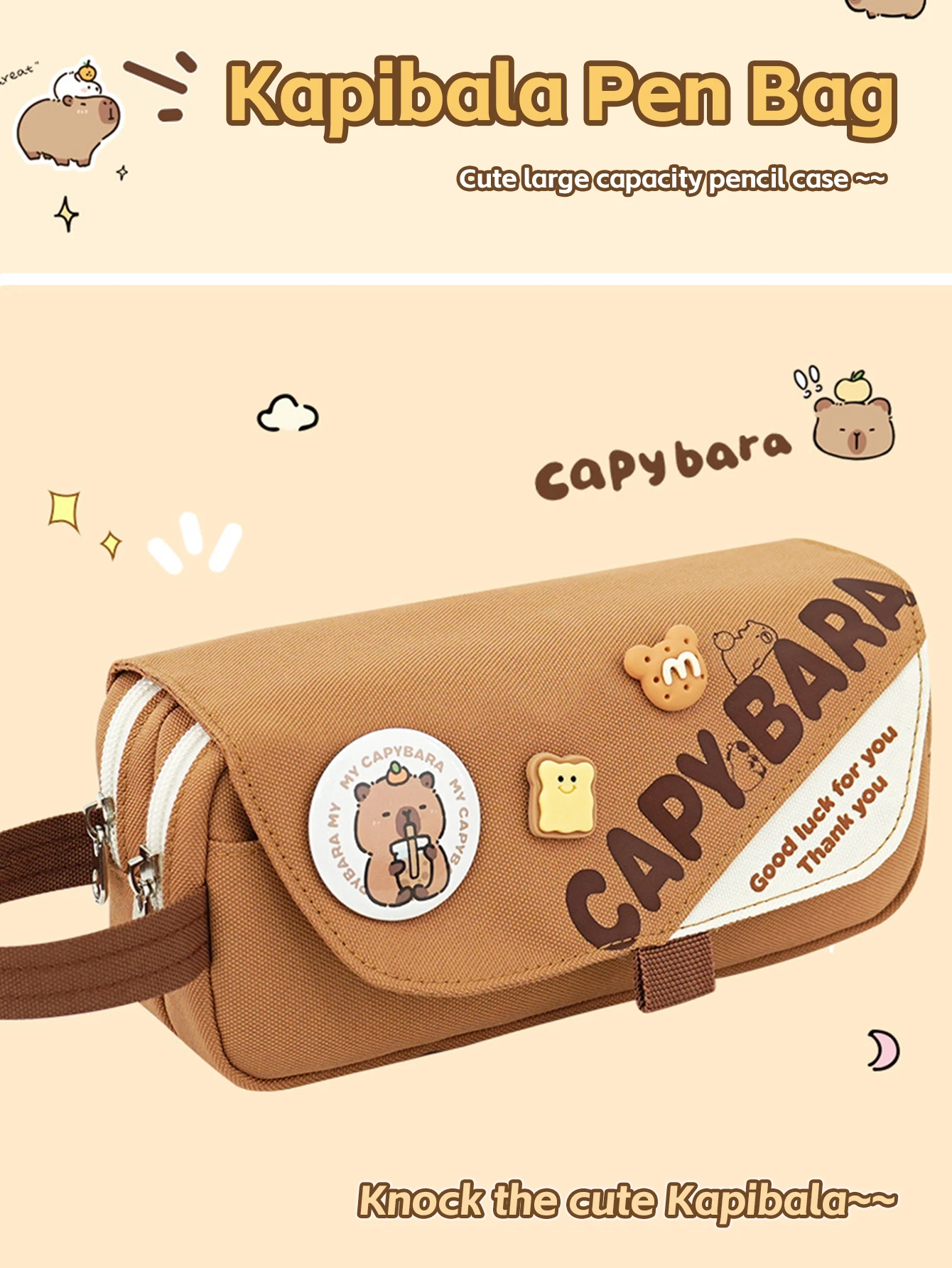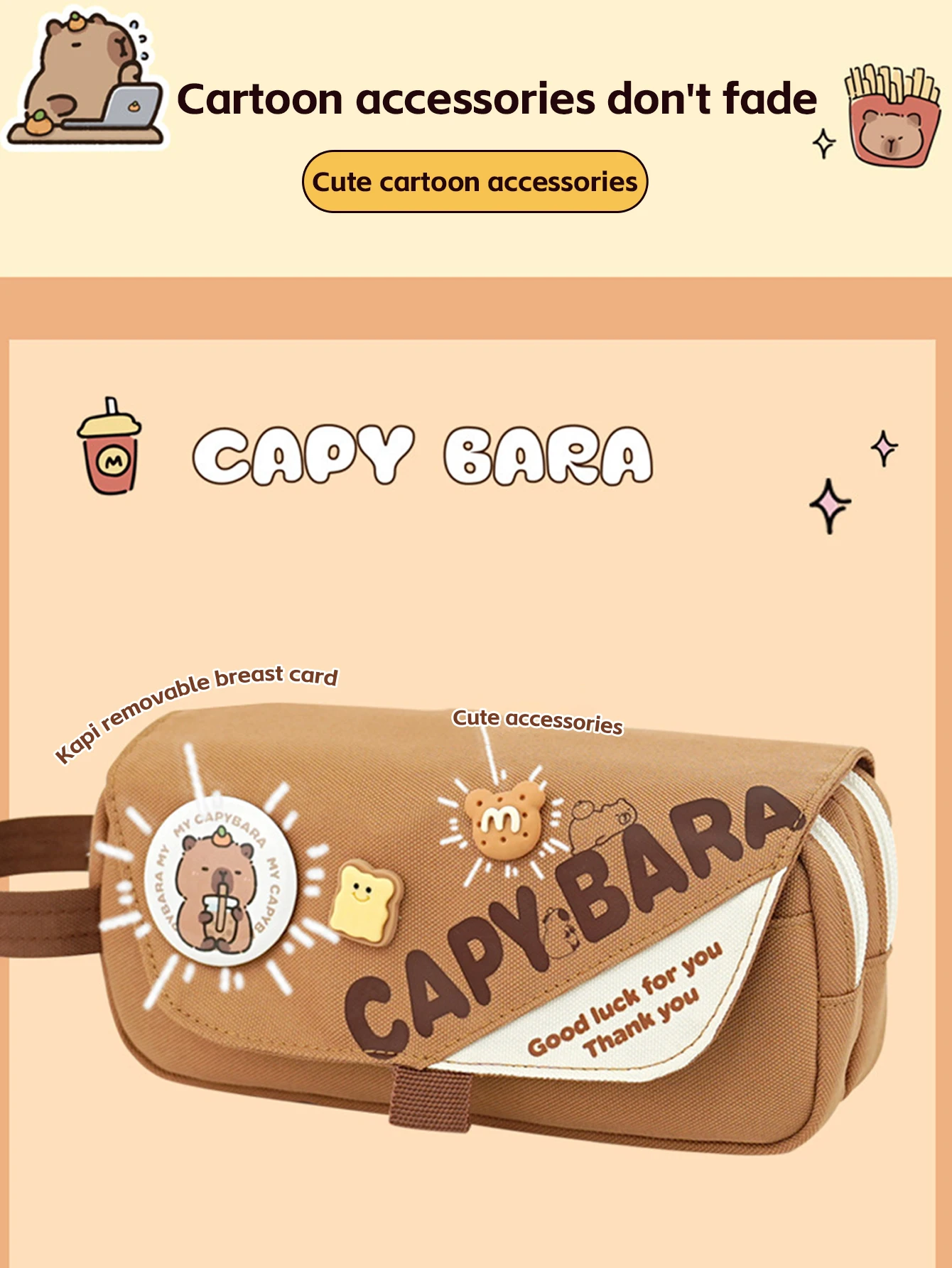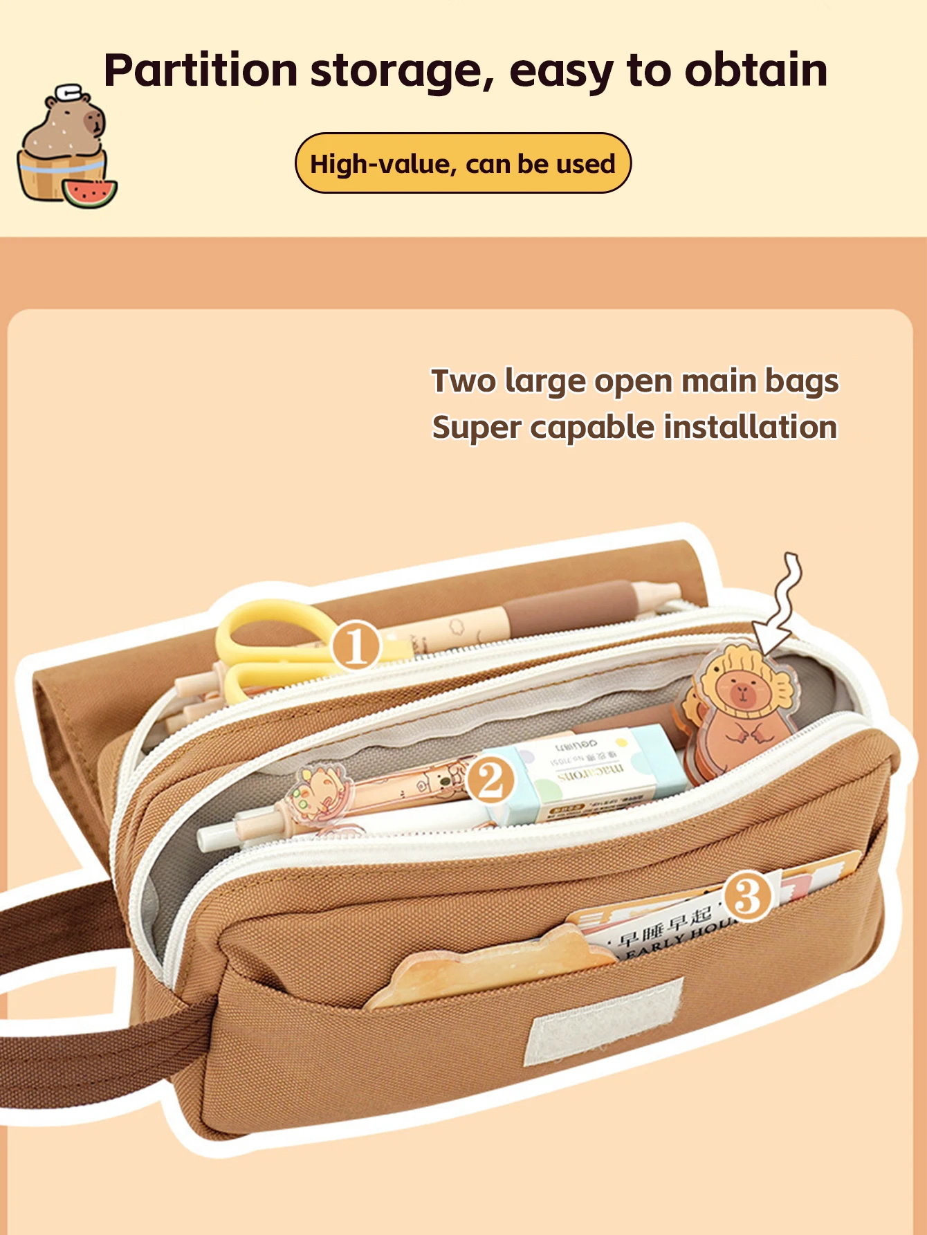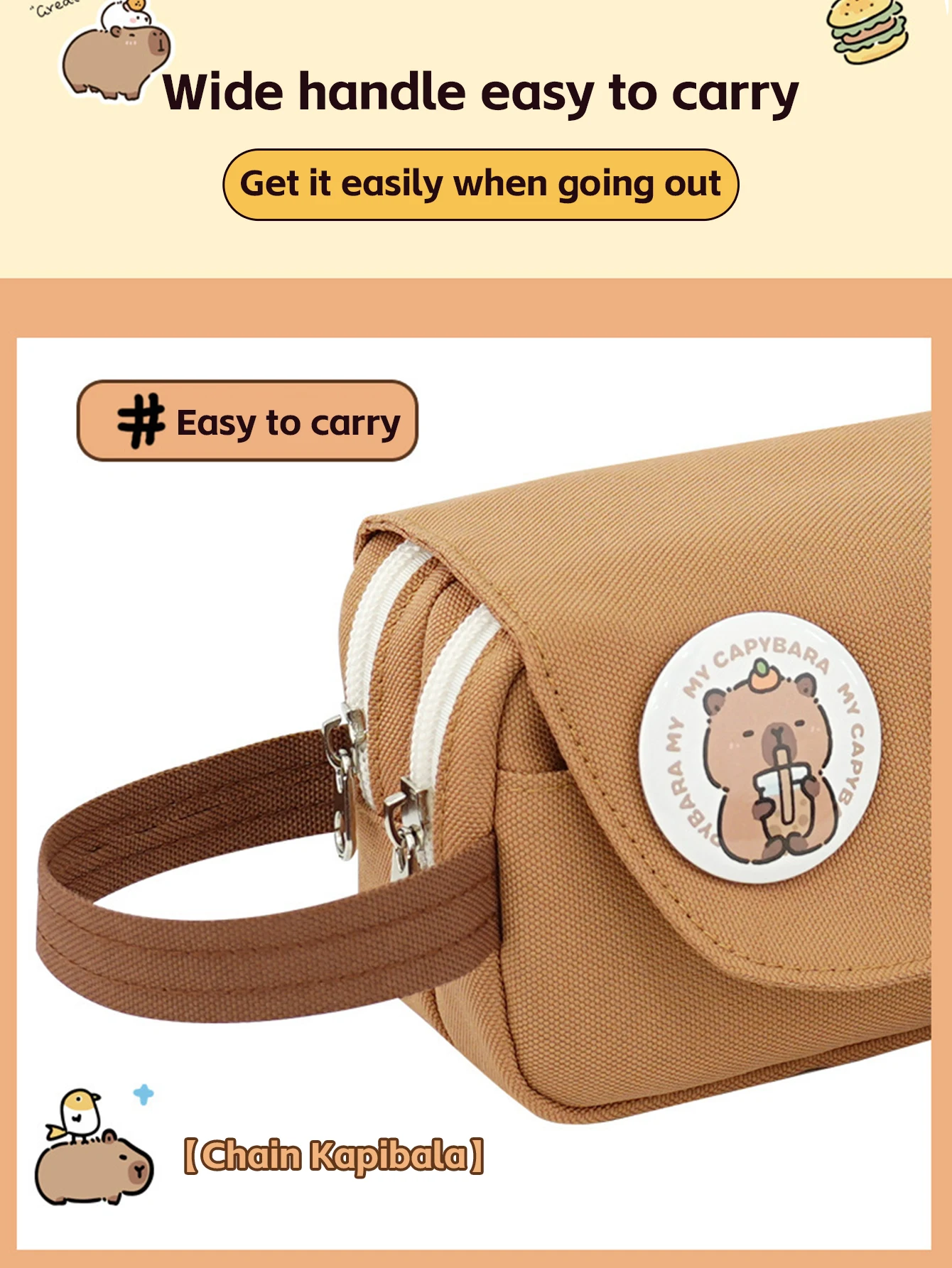 Cappybara 3-Layer Large Capacity Pencil Beautiful Design with Detachable Inner Pockets for Kids/Students (Waterproof & Lightweight)