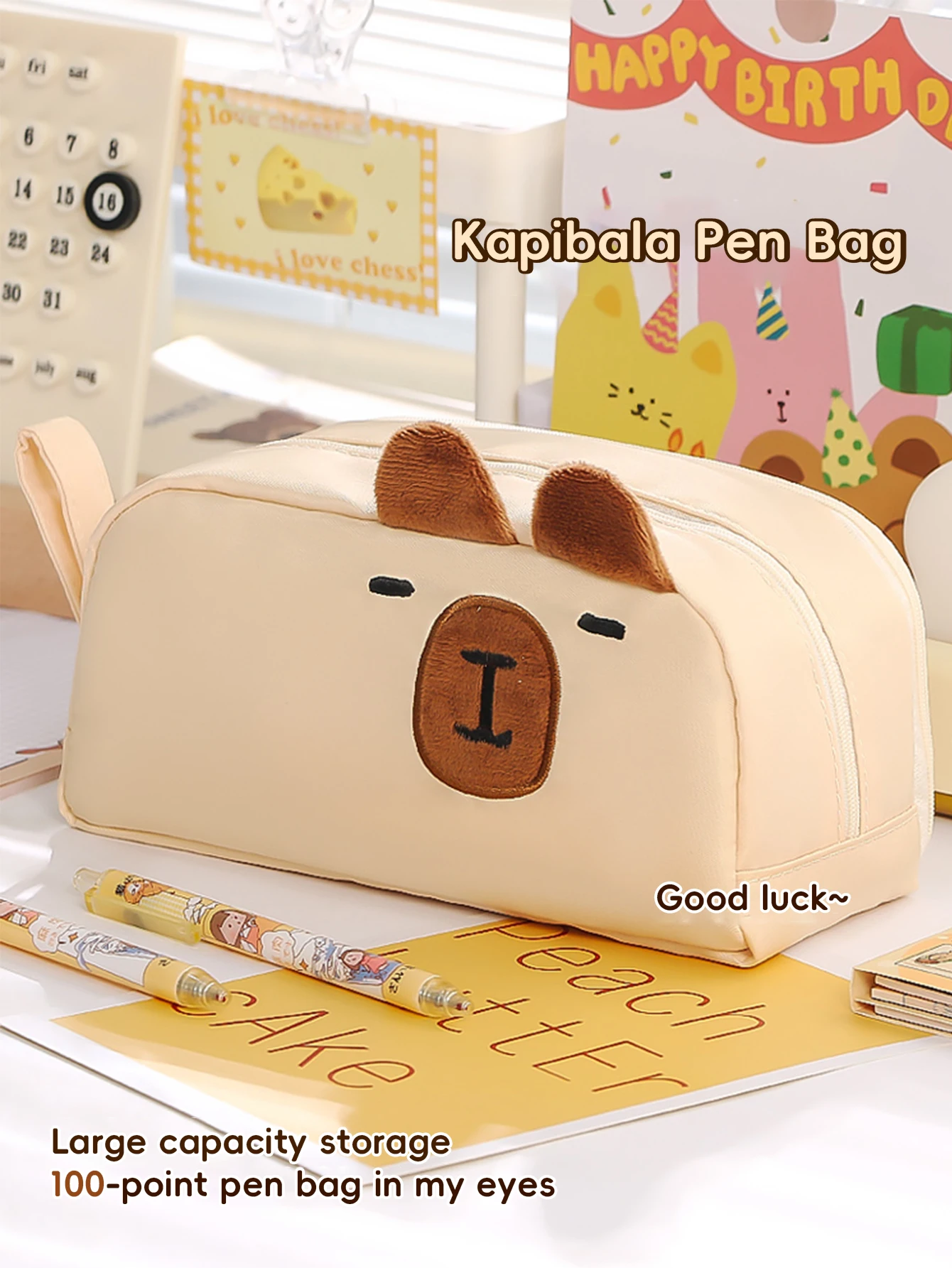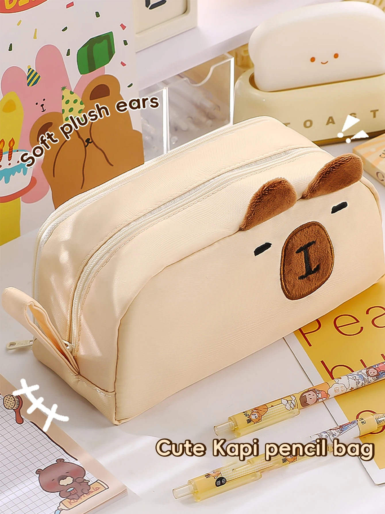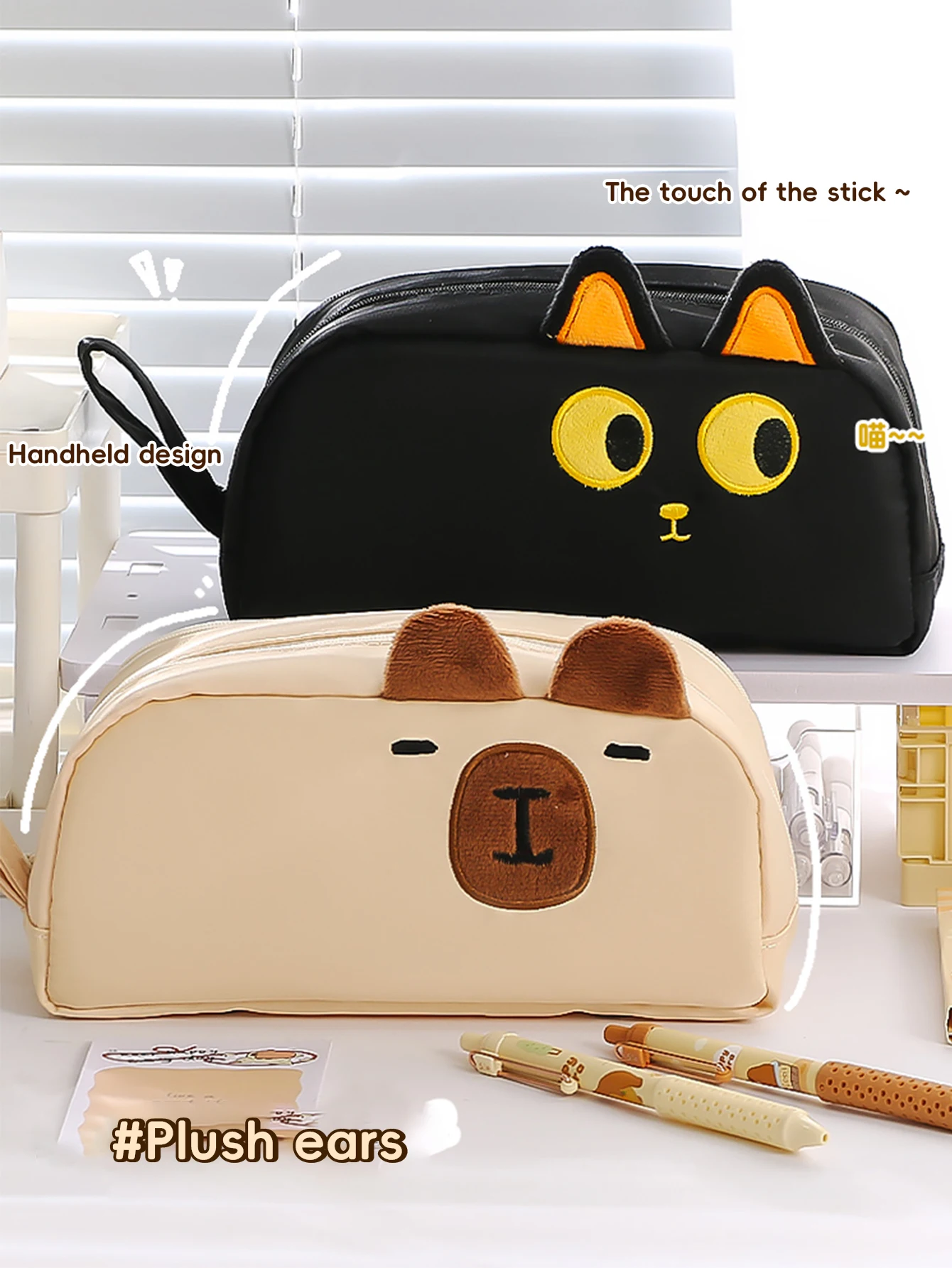 Kawaii Pencil Case for Girls Kapibara-San Large Capacity Makeup Bag Aesthetic School Office Supplies (Cartoon Animal Design), Cute Cat Pencil Case