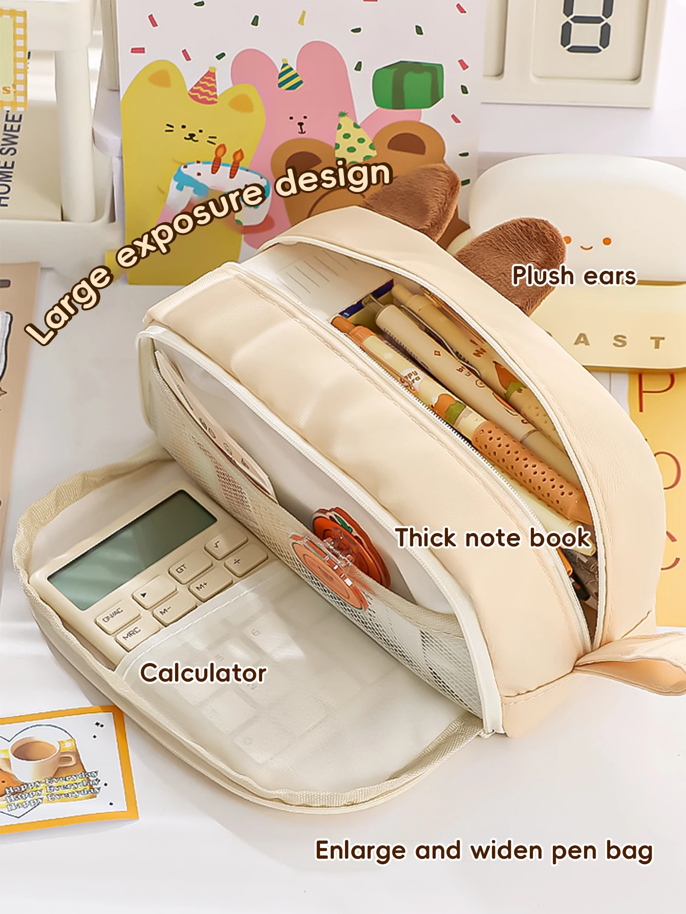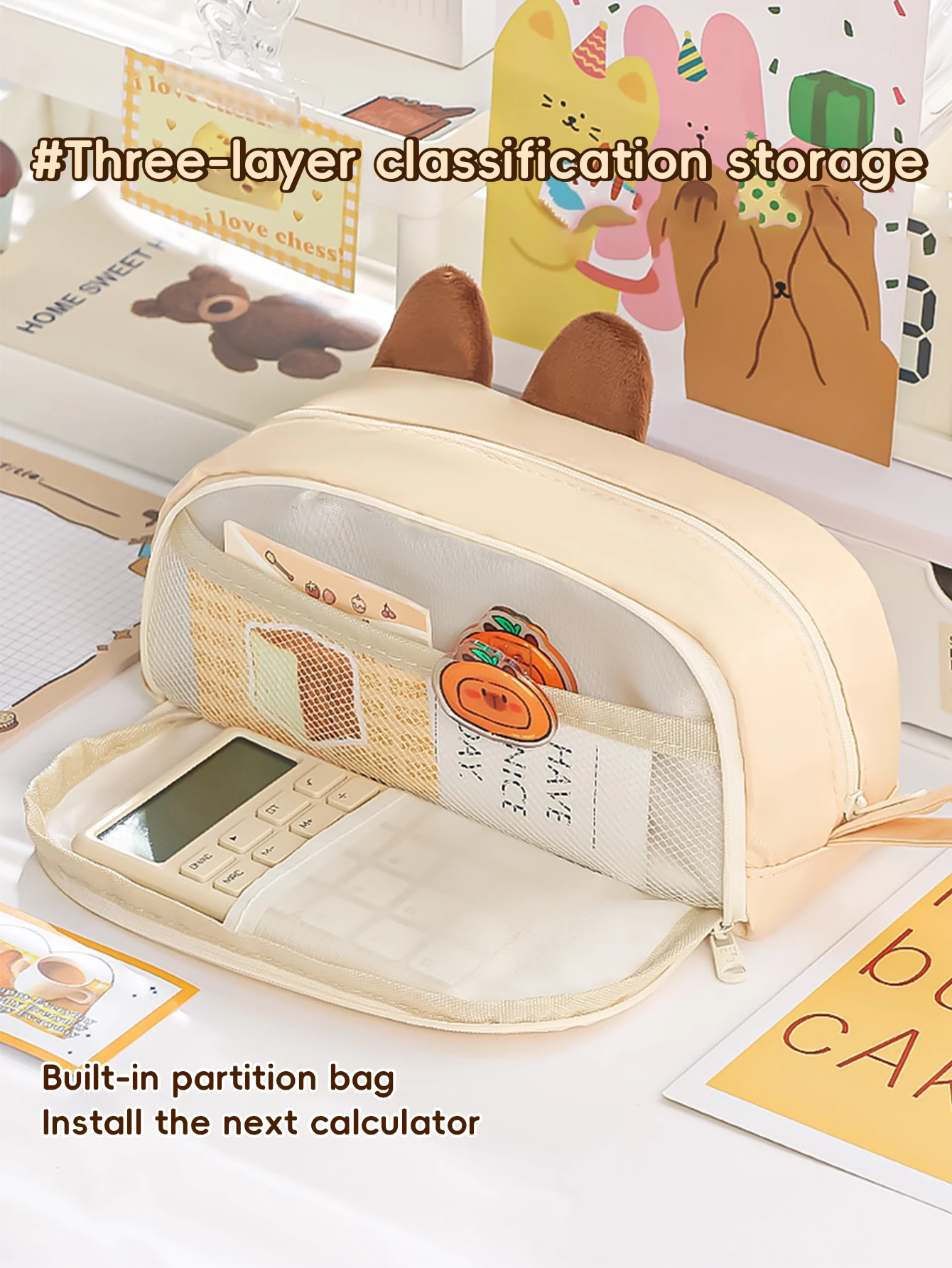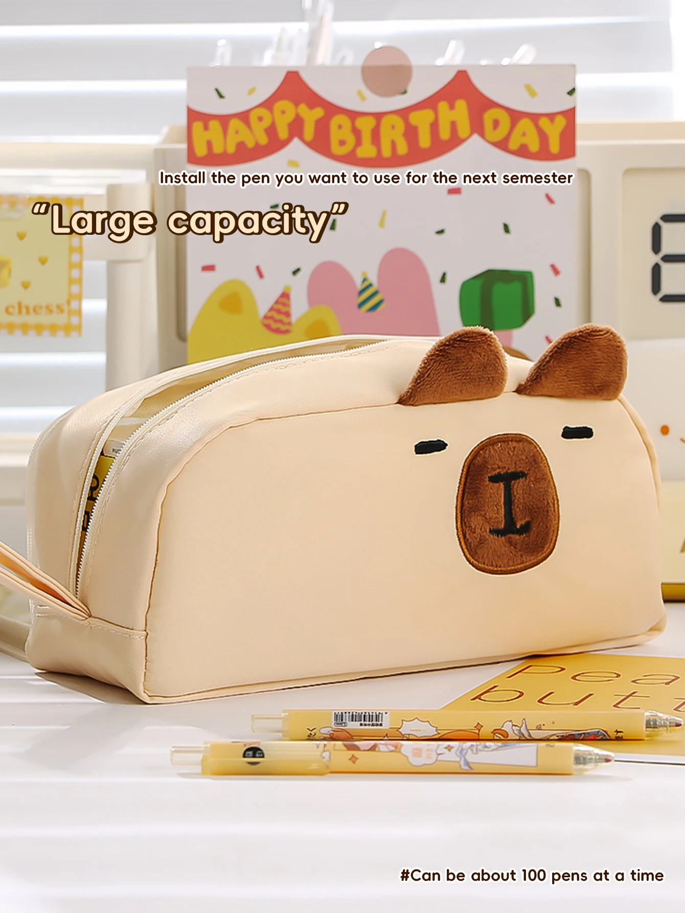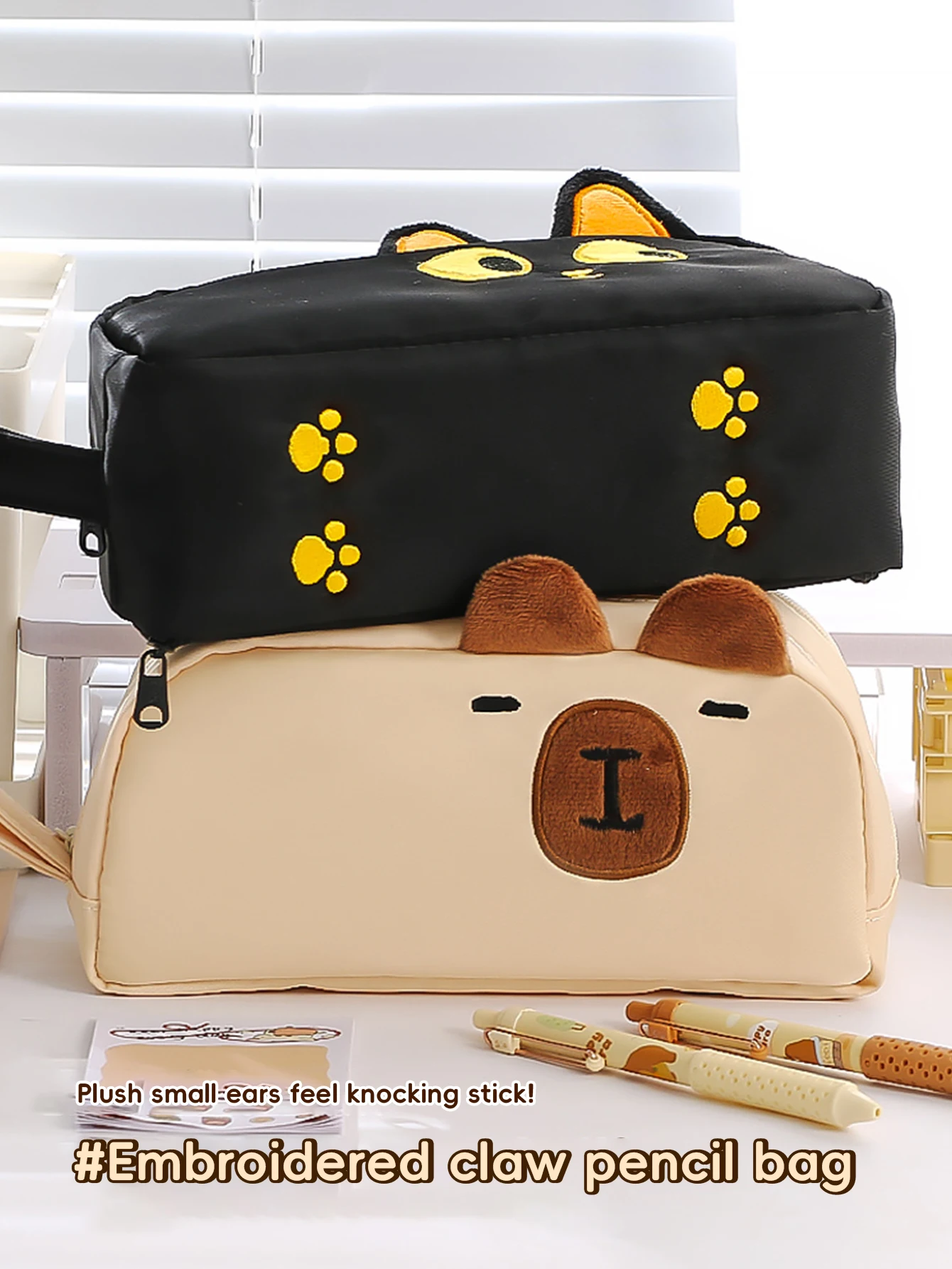 Kawaii Pencil Case for Girls Kapibara-San Large Capacity Makeup Bag Aesthetic School Office Supplies (Cartoon Animal Design), Cute Cat Pencil Case