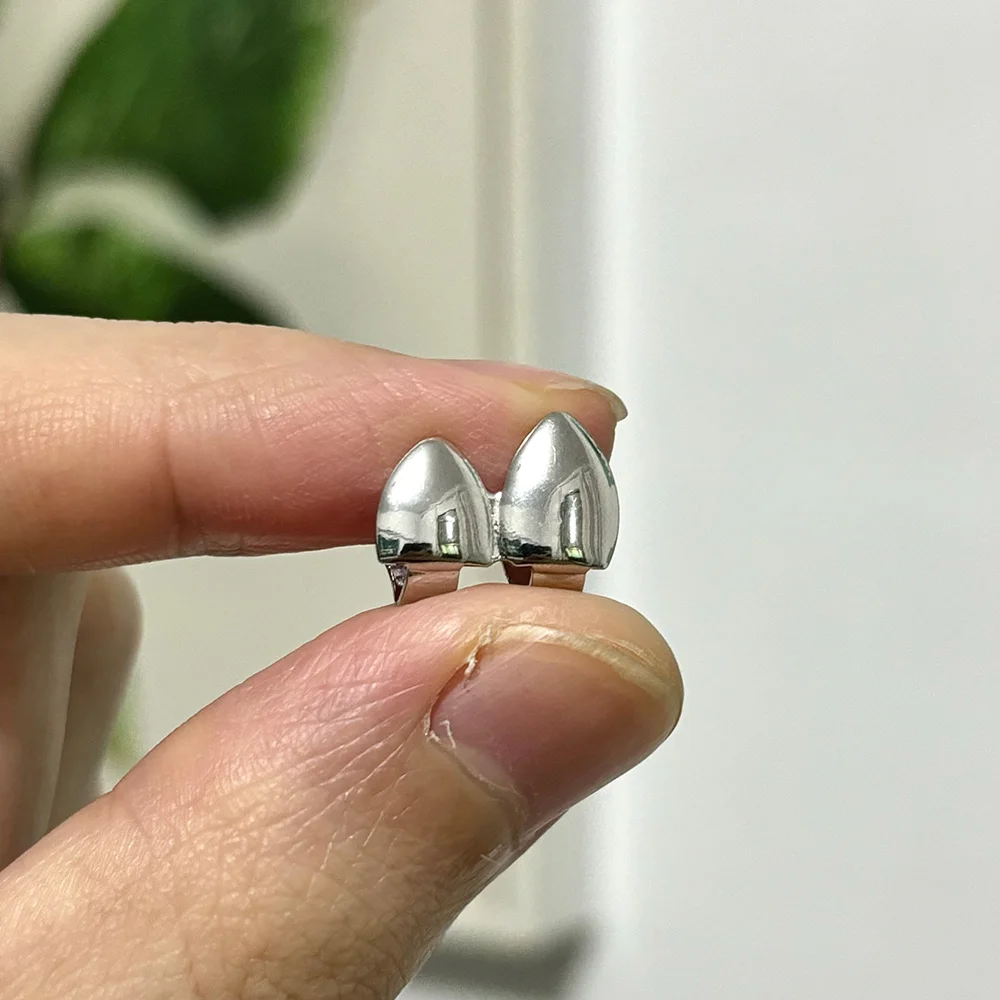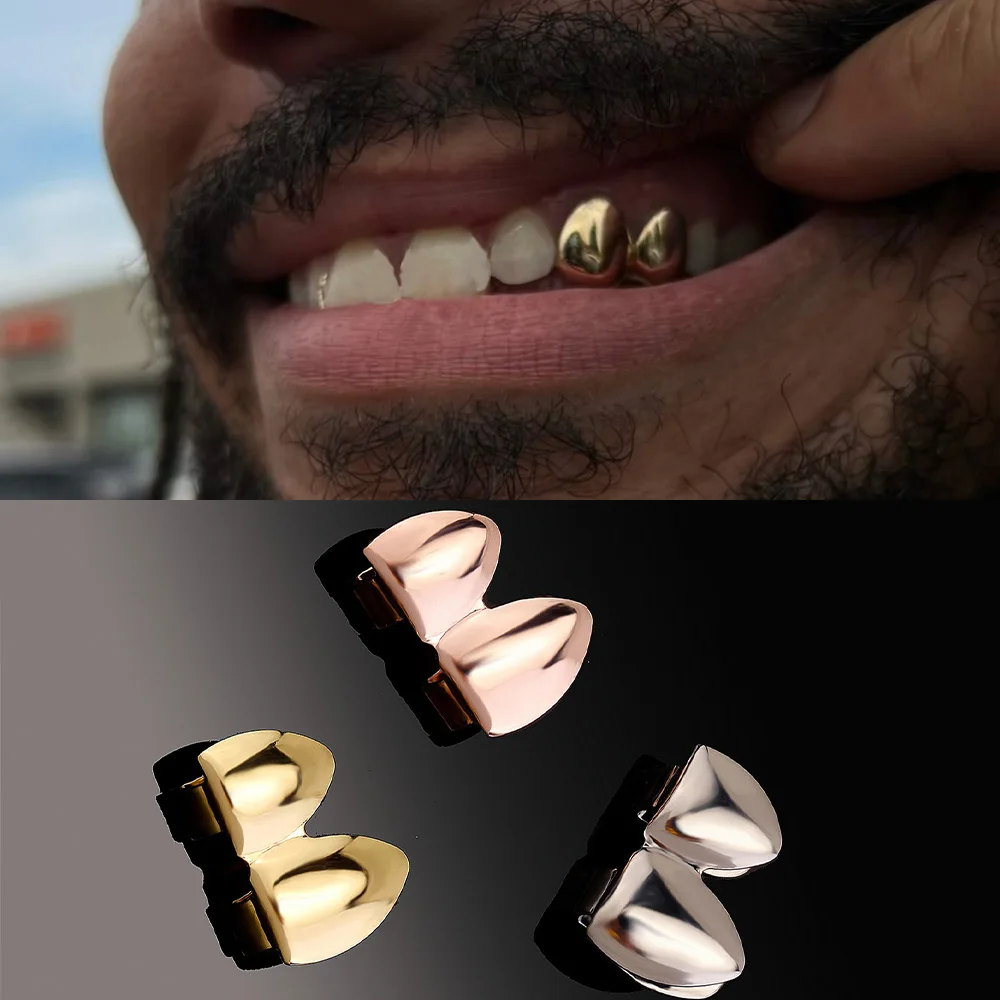 Simple Hip Hop Double Glossy Teeth Grillz Gold And Silver Color, Tooth Caps Fangs Dental Grills For Women And Men, Jewelry Cosplay Gift