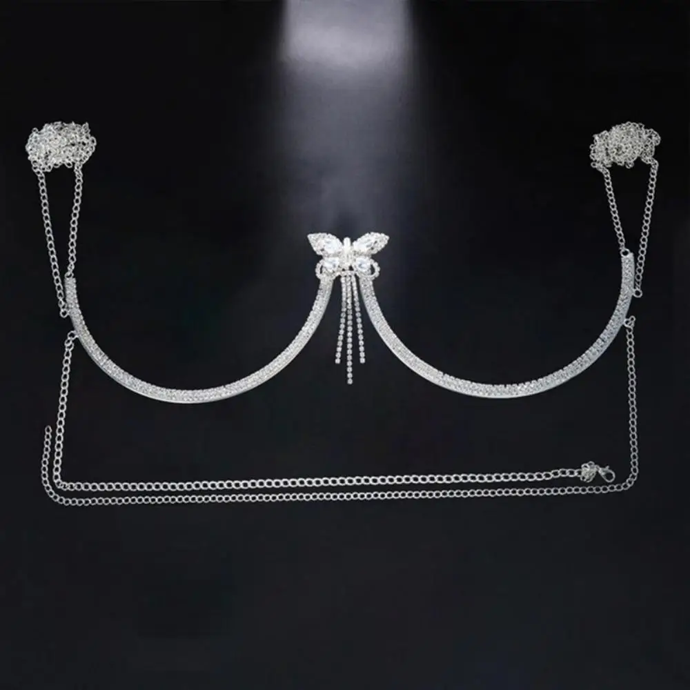 Rave Top Zircon Butterfly Chest Bracket Chain Bikini Body Jewelry, Sexy Outfits Crystal Body Chain Lingerie Harness for girls
