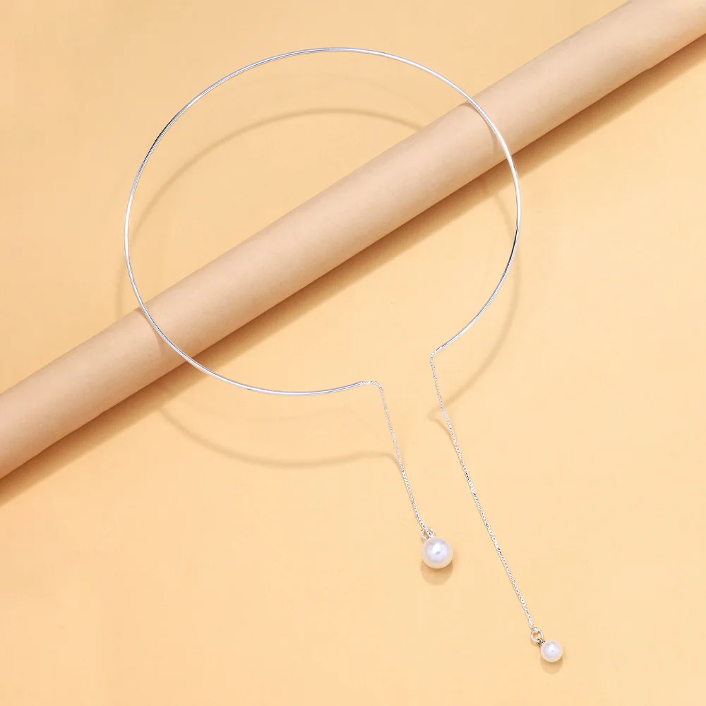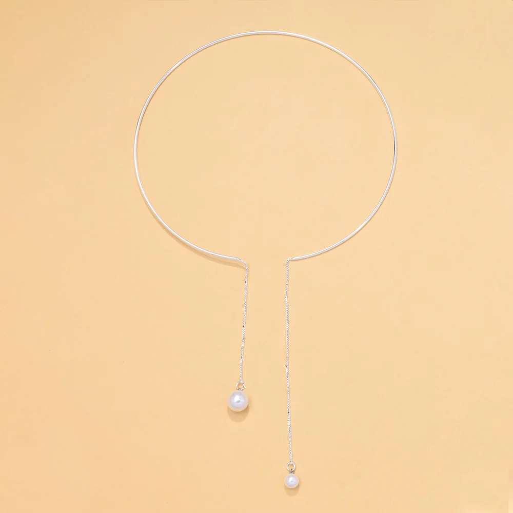 2026 New Trendy Metal Choker Necklace Pearl Dangle Concise, Elegant Open Tassel Pendant Necklace Bridal Women Jewelry, Beautiful Christmas Gift