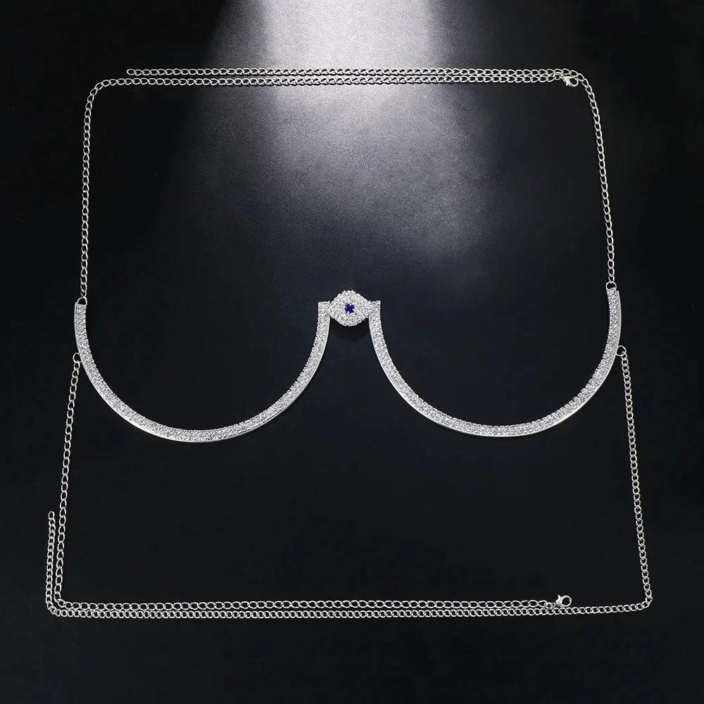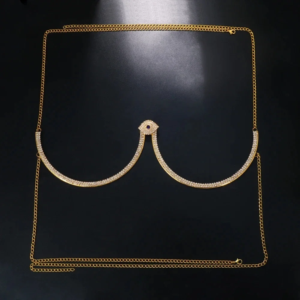 Beautiful Demon Eye Chest Bracket, Lovely Necklace Bikini Body Jewelry Summer Beach, Festival Rhinestone Chest Chain Harness Girls