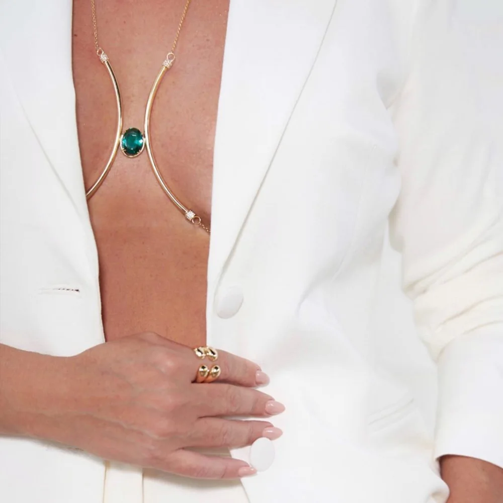 Name:Green crystal metal chest bracket bra