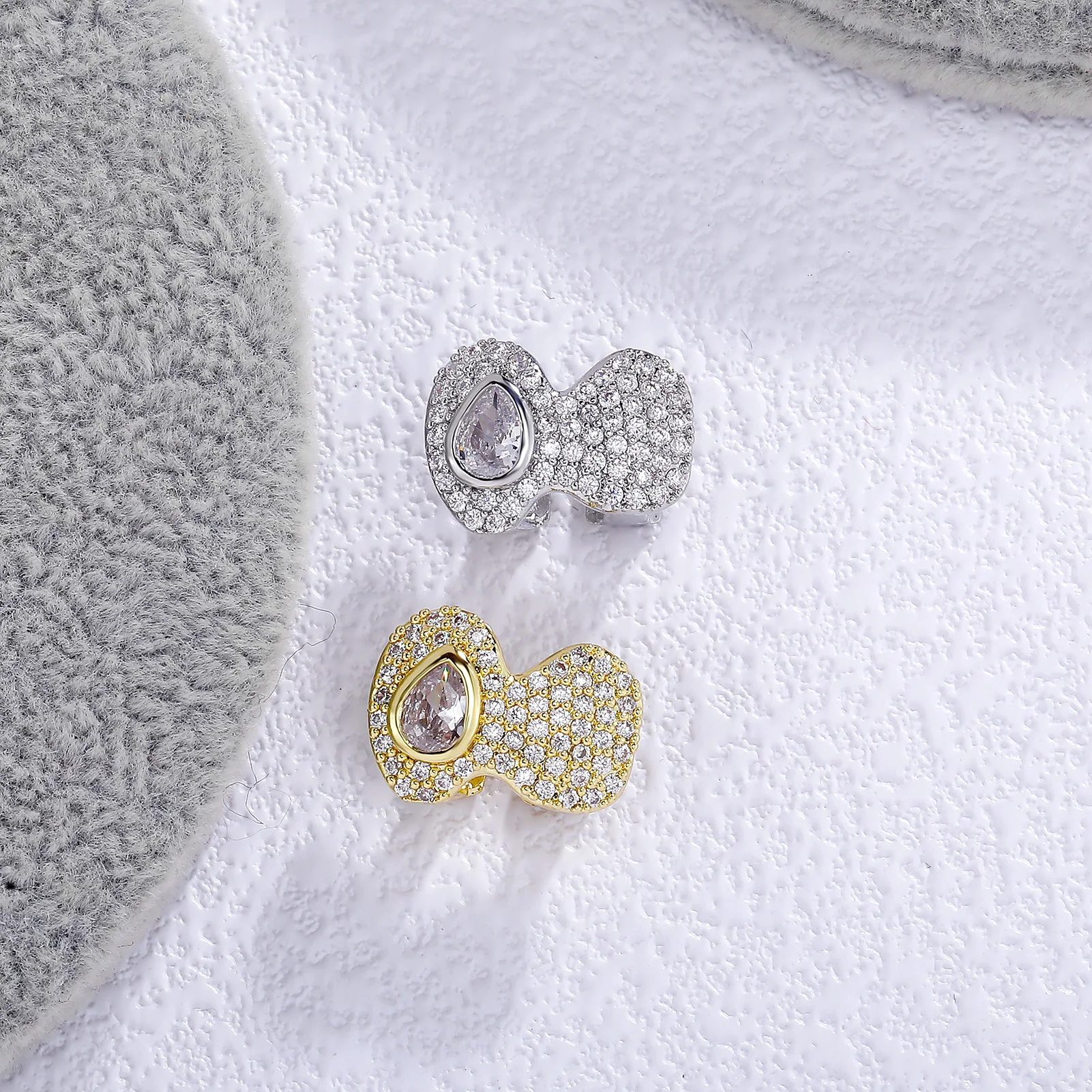 TOPGRILLZ Iced Out Full CZ Stone Teeth Grillz Braces Hip Hop Double Shiny Zircon Tooth Caps For Women Men Rapper Jewelry